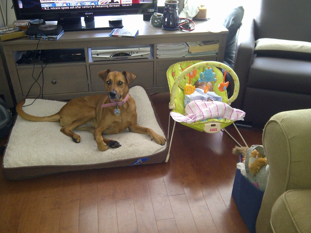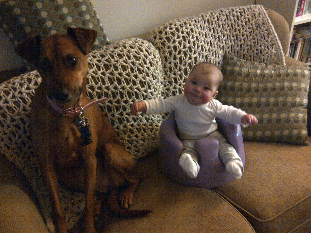 In addition to the two Tiny Humans, we also share our house with Bajan Mutt, our slightly spoiled immigrant pup from Barbados. Being the pampered pooch she is, Bajan Mutt has several dog beds throughout our house. M is slightly allergic to dogs so I try to wash the covers on Bajan Mutt’s dog beds as often as possible. A couple of years ago we bought her new beds from Ikea which are comfy and easy to wash but the beds do still get damp when she comes into the house wet. (Or the Tiny Humans spill on the dog’s bed.) That’s when I realized that waterproof playpen sheets are the perfect size to protect the mattress and extend the life of the dog bed. For smaller beds you could probably wrap both sides or for bigger dogs use a crib mattress cover.
